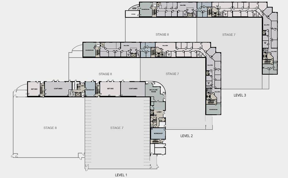 Currently the offices are available for productions, Visual Effects Departments, or post–production space as the office pod layouts can accommodate these types of uses.